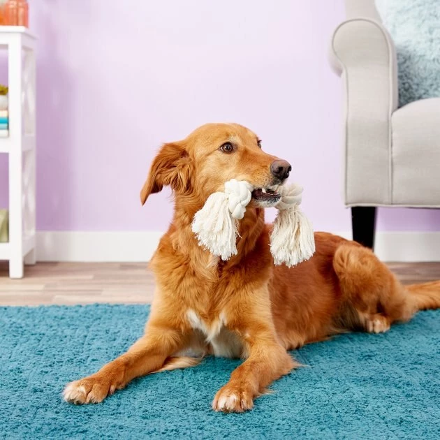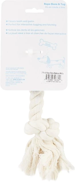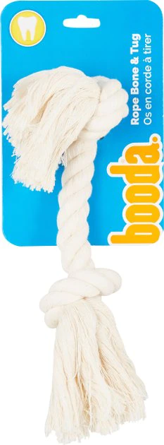 Booda Rope Bones can be used for interactive play or as solo dog chews. These natural cotton bones are a fun and easy way to floss your dog’s gums and help prevent dental disease. Features machine washable, tightly twisted cotton for long-lasting durability.