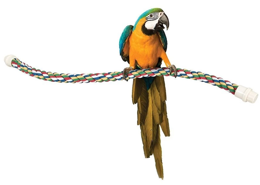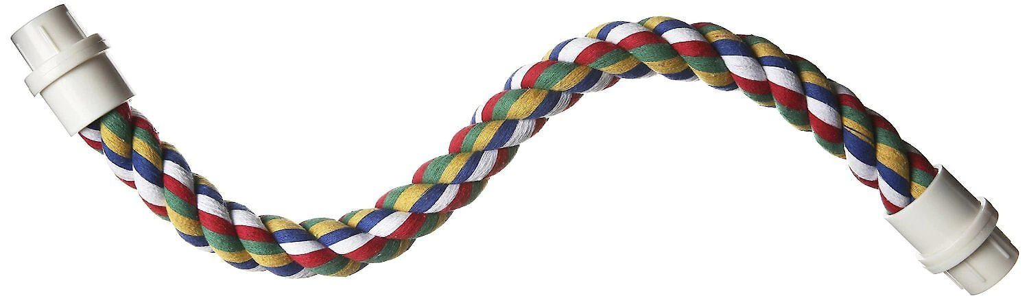 Give your bird a comfortable place to perch with the JW Pet Large Comfy Bird Perch. It’s a simple, multi-colored rope that you can twist and bend to create all sorts of fun shapes for your pet to explore. Each end easily attaches to a wire cage, and the rope will hold its shape without exposing dangerous wires. Pet birds need perches of varying lengths, thicknesses, styles and materials to keep their feet healthy and their grip strong. The JW Pet Large Comfy Bird Perch makes a colorful and fun addition your bird’s perching choices.