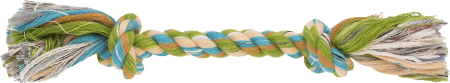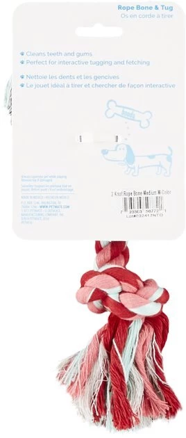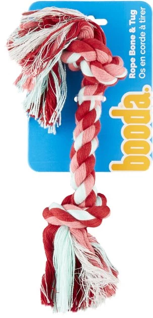 There’s no end to the fun your playful pooch can have with the Booda Multi Color 2-Knot Rope Bone Dog Toy. Engineered for rugged durable, this soft, cotton-blend twisted rope features large knots on each end for easy grip. As versatile as it is durable, this high-quality rope toy is perfectly suited for a game of tug, toss-and-fetch, or solo chew time to help prevent boredom or anxiety and keep your furry friend from getting into mischief. The strands also provide a fun and easy way to floss his teeth while he plays to help freshen breath and prevent dental disease.