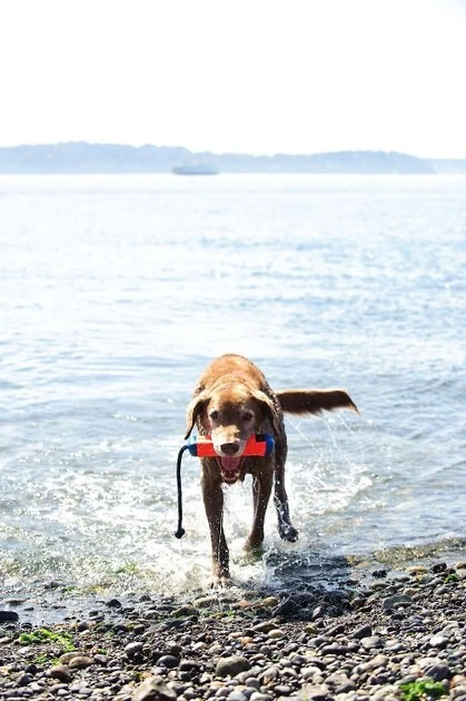 Games of tug-of-war don’t need to end just because you’re in a pool or lake when you have the floating Amphibious Bumper from Chuckit! Your four-legged swimmer can pull to his heart’s delight while enjoying a splashing day outdoors. Let him sink his teeth into the soft-but-durable memory foam material while you pull on the cord. Just don’t forget: the dog always wins!