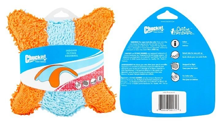 Chuckit! Indoor Flying Squirrel is the perfect complement to rainy days, hardwood floors, or late-night games of fetch. The lightweight Bounceflex Core Technology makes it soft enough when meeting a wall or furniture while giving it just the right amount of bounce for indoor play. Hand launch the Indoor Flyer for a game of fetch or play a game of tug-of-war, either way you can still have a great time indoors with your pooch.