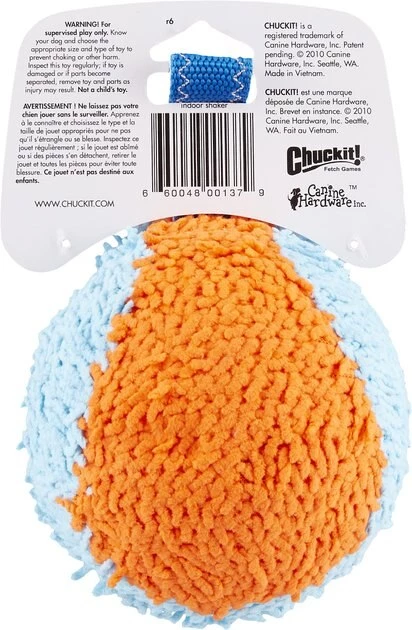 No yelling at Fido for bringing this ball in the house…that’s exactly where it belongs! The Chuckit! Indoor Shaker is the perfect complement to rainy days, hardwood floors, or late-night games of fetch. The lightweight Bounceflex Core Technology makes it soft enough when meeting a wall or furniture while giving it just the right amount of bounce for indoor play.