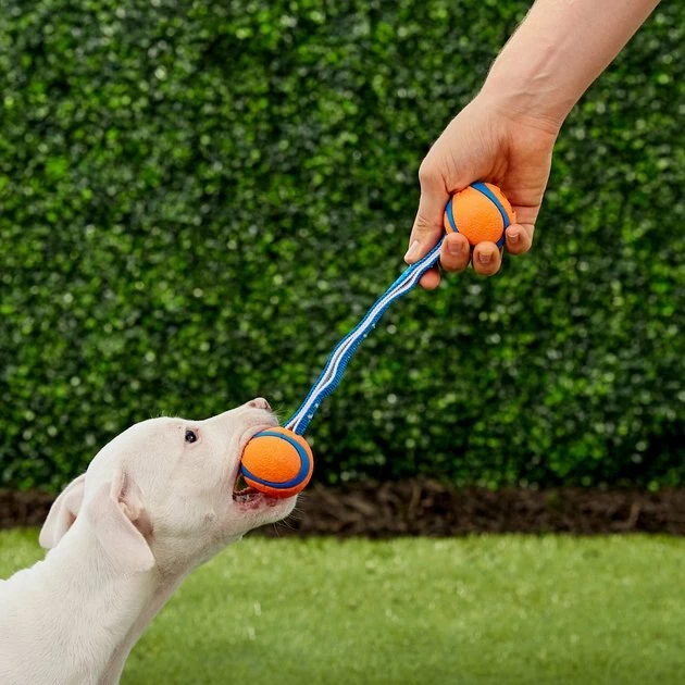 - Features two tennis balls connected by a durable, two-ply nylon handle that makes it easy to toss.