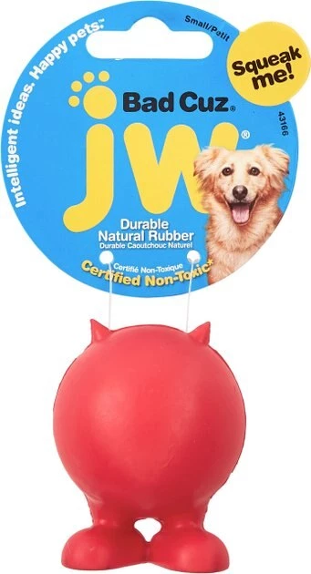 It takes more than horns to make your toy the baddest toy on the block. Lucky for your pup, the JW Pet Bad Cuz Dog Toy lives up to its name in the biggest way. Durable, bouncy rubber meets silly design to deliver a game of fetch your buddy will never forget. Inside Bad Cuz’s two-legged red-horned ball there’s a squeaker to make that mischievous pup squeal with delight.