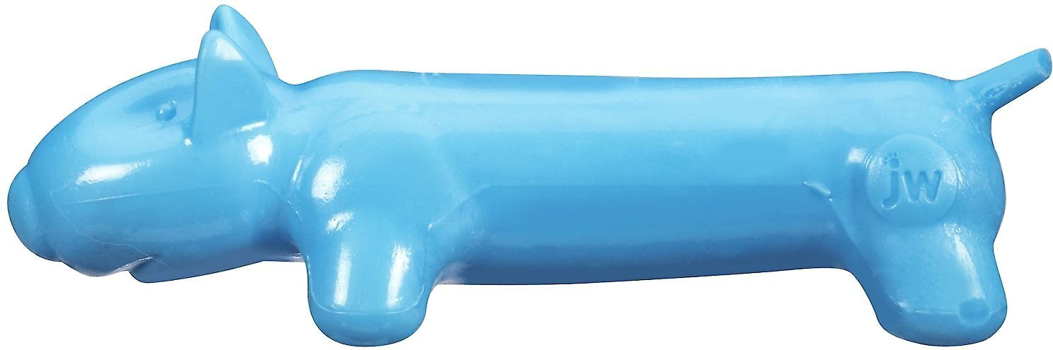Every pup needs a pal, and this one is tough enough to stick around through the roughest of play! The Megalast “Long Dog” Dog Toy from JW Pet is made from the latest Thermo Plastic Rubber, giving it a tough demeanor that loves to be chewed. The vanilla scent and squeaker make it even more fun for gnaw-happy dogs. When the chewing is over, “Long Dog” loves to be fetched! He bounces and floats, too!
