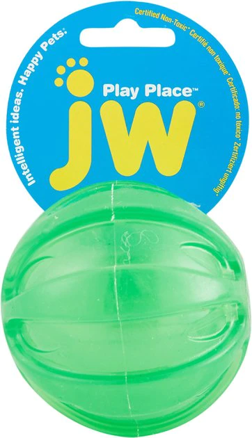 The JW Playplace Squeaky Ball gets his adrenaline pumping. The Play Place line of multi-textured toys is made from JW’s super tough Megalastomer. This bouncy, brightly colored translucent material is not only strong, it is also 100% recyclable!