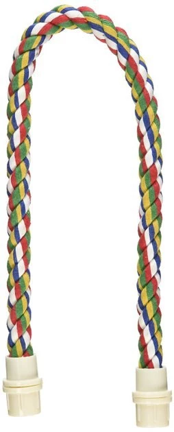 Give your bird a comfortable place to perch with the JW Pet Small Comfy Bird Perch. It’s a simple, multi-colored rope that you can twist and bend to create all sorts of fun shapes for your pet to explore. Each end easily attaches to a wire cage, and the rope will hold its shape without exposing dangerous wires. Pet birds need perches of varying lengths, thicknesses, styles and materials to keep their feet healthy and their grip strong. The JW Pet Small Comfy Bird Perch makes a colorful and fun addition your bird’s perching choices.