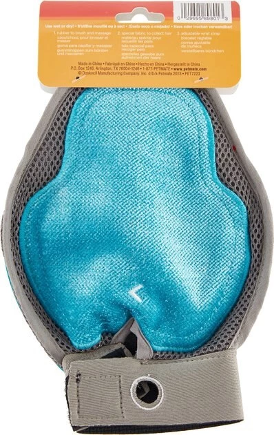 Petmate’s FurBuster 3-in-1 dogs Grooming Glove fits comfortably around your hand. This grooming glove comes with inner straps for smaller hands to ensure a universal fit. In addition, this grooming glove has an adjustable wrist strap to keep it secure. Mesh outside allows water to flow through and encourages quick drying. The rubber side can be used either wet or dry and has tiny brush-like fingers that can groom, scrub and massage while special fabric on the other side picks up loose hair. Once you are finished grooming your furry friend, simply hang the glove for easy storage.