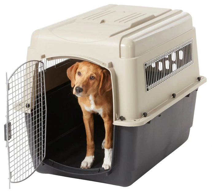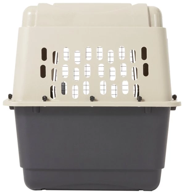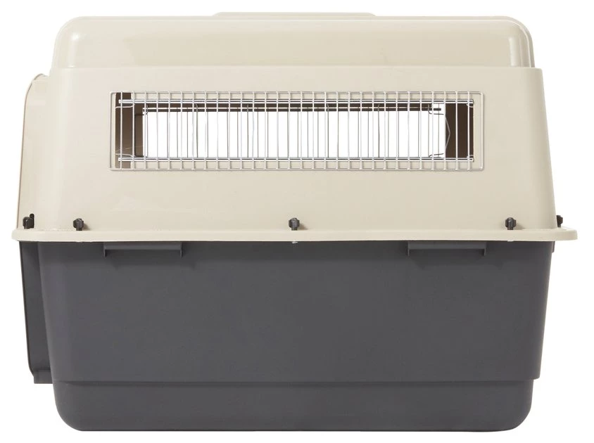 Petmate’s Vari Kennel Ultra provides your pet with a safe travel and training kennel. The durable plastic shell comes with heavy-duty, easy to assemble hardware. Each kennel features an easy-open squeeze latch, metal side vents to promote healthy air flow and an interior floor moat to keep your pet dry. Convenient tie-down strap holes allow you to zip-tie the kennel together for added security during airline travel. The Vari Kennel Ultra is eco-friendly and meets most airline requirements. Be sure to check with your airline well in advance of your travels to learn about their individual requirements.