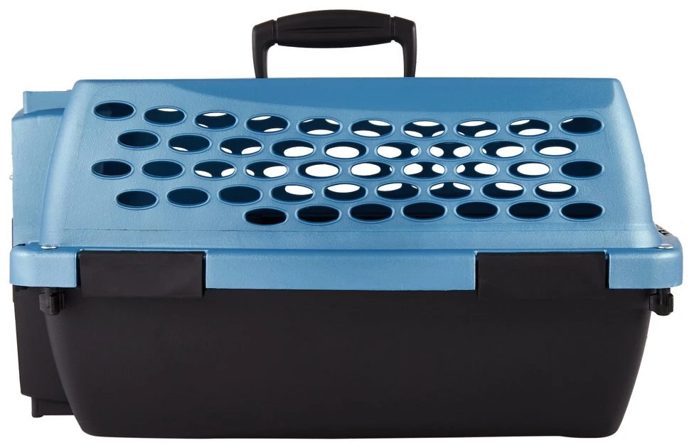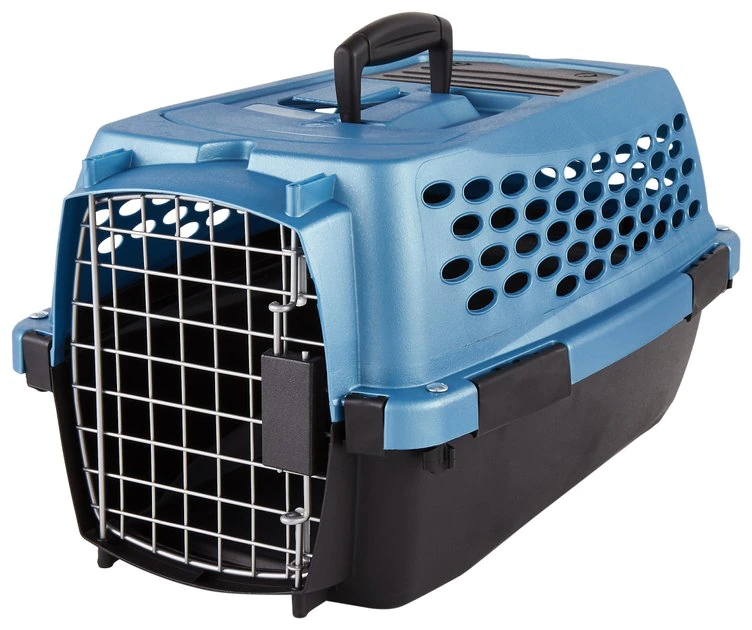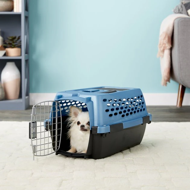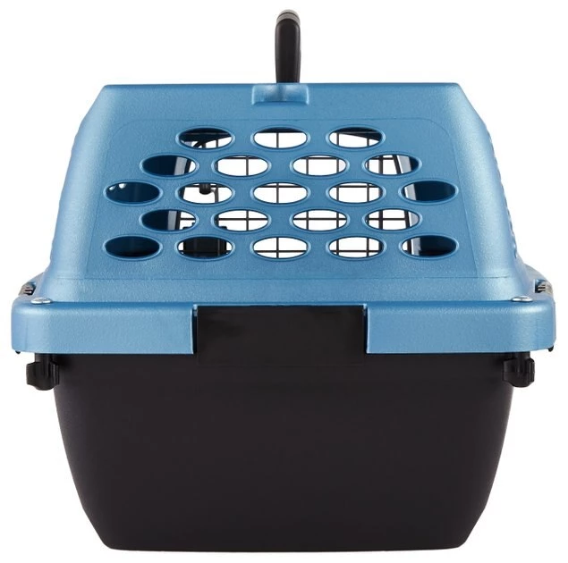 Suit a variety of needs with the Petmate Vari Kennel Portable Dog & Cat Kennel. Perfect for housebreaking, training and traveling, this kennel features a tough, durable construction with vents along the sides and back wall to keep pets comfortable. The easy-open squeeze latch allows you to quickly release him to freedom, and while inside, there’s a moat that keeps him dry in case of spills or accidents. There’s a notch to loop the seat belt through at the top for secure car travel, and the versatile design also meets most travel air requirements—there’s even tie-down strap holes on the perimeter for zip-tie installation for extra security while flying.