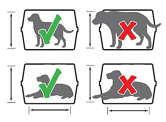 - Add 4 inches to determine maximum measurements. Remember, your dog should be able to stand up and turn around while in their kennel.